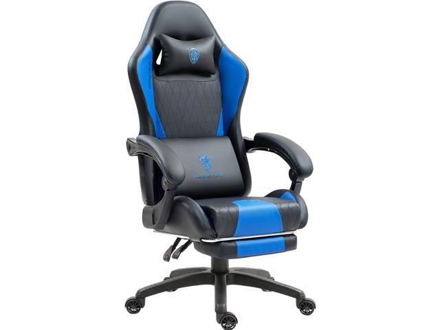 Dowinx Gaming Chair with Lumbar Support and Footrest, Ergonomic Video Game Chair for Adults, Adjustable High-Back Office Chair with Pocket Spring Cushion, Reclining Computer Chair with Headrest Blue