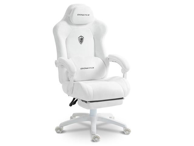 Dowinx Gaming Chair with Lumbar Support and Footrest, Ergonomic Video Game Chair for Adults, Adjustable High-Back Office Chair with Pocket Spring Cushion, Reclining Computer Chair with Headrest White