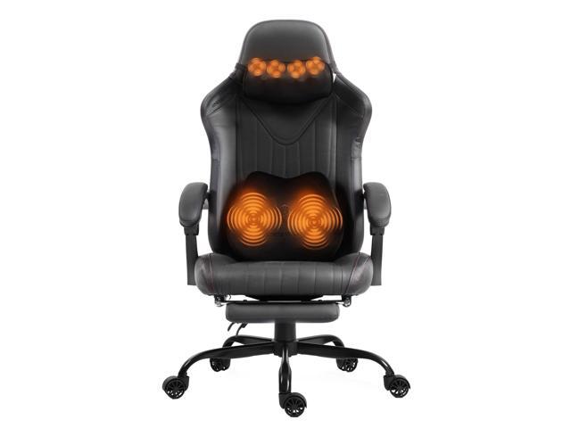 Dowinx Gaming Chair with Shiatsu Neck Massage and Lumbar Support for Home&Office, High Back Recliner for Big and Tall, PU Leather Game Chair Seat Height Adjustable, Ergonomic Computer Chair, Black