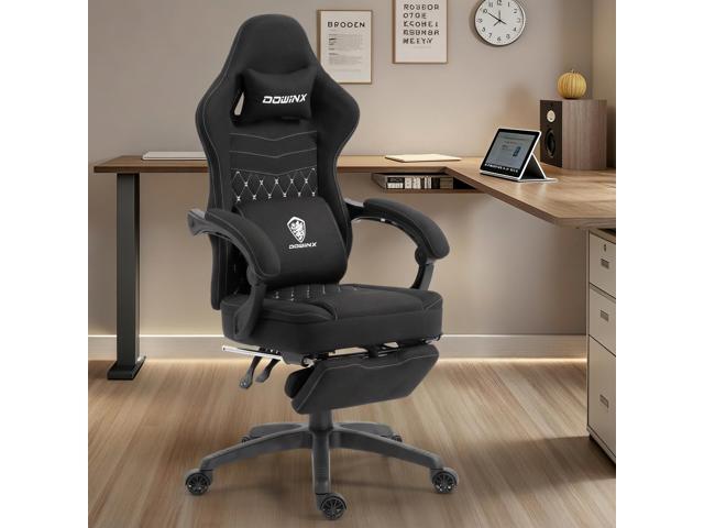 Dowinx Gaming Chair with Footrest, Breathable Fabric Gamer Chair with Gel Pad and Storage Bag, Ergonomic Office Chair with Lumbar Support for Home Task, Black