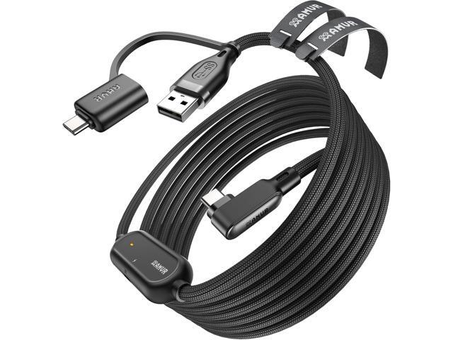 IHDAPP 16.4FT (5M) USB A to USB C VR Charging Link Cable Compatible with Me-ta Quest 3/3S/Pico 4 - with Separate Fast Charging Port, High-Speed Max 5Gbps Transfer to PC VR/Steam VR, Play While Charger