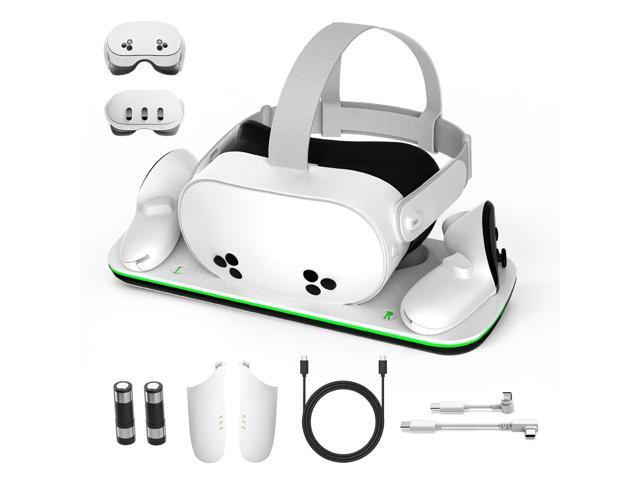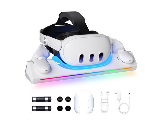 IHDAPP Charging Dock Compatible with Me-ta Quest 3/3S, VR Accessories Charging Station for Me-ta O-cu-lus Quest 3/3S with LED Indicator, Charger Stand with Rechargeable Batteries, with Green Light