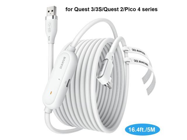 Link Cable with 18W Charging 16ft, Compatible with Oculus Meta Quest 3S/ 3/2/ Pro and Pico 4, PC VR, Steam VR Accessories, 2-in-1 High Speed 5Gbs USB3.0 to USB-C Data Cord for VR Headset