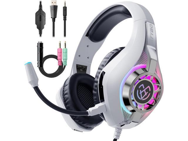 Gaming Headset for Ps5 Ps4 Switch Xbox PC with RGB Light, White Gaming Headphones Noise Canceling Mic & Surround Sound