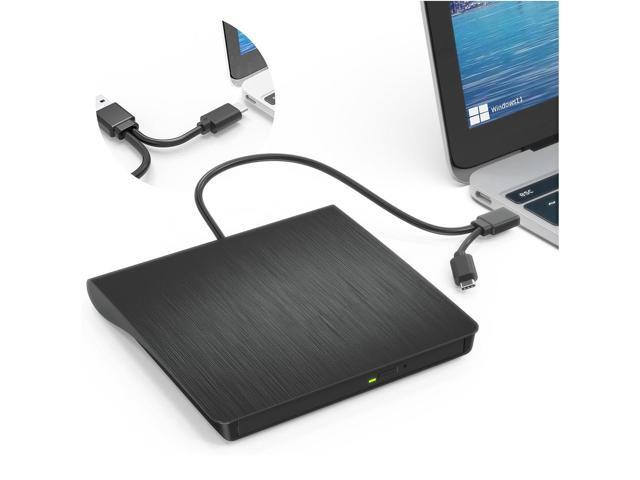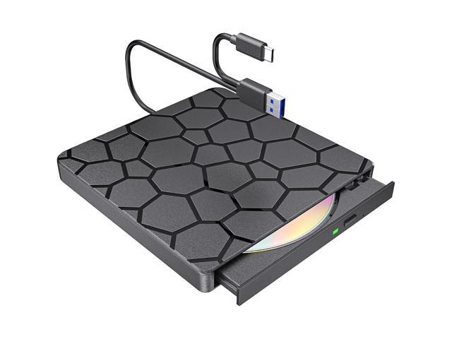 External CD DVD Drive, USB 3.0 USB C Type-C Portable CD/DVD+/-RW Drive/DVD Disc Player for Laptop Slim CD ROM Burner Compatible with Mac Laptop Desktop PC Windows XP/2003/Vista/7/8/10 Linux OS (BLACK)