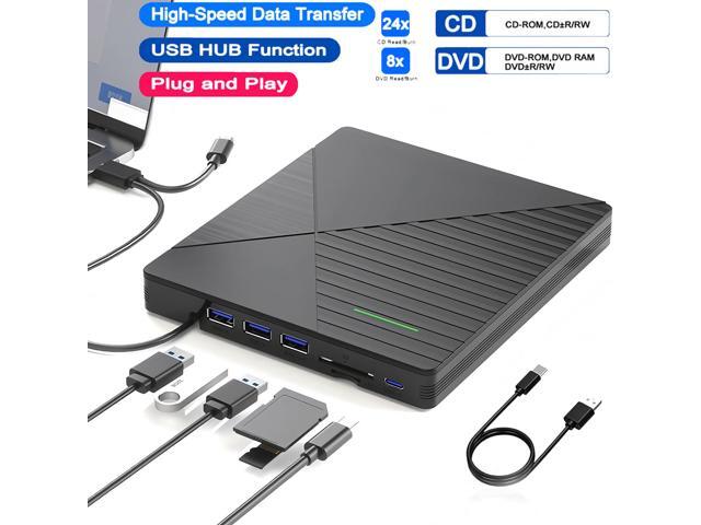 IHDAPP 8 in 1 External CD/DVD Drive for Laptop, USB 3.0 Portable External CD Burner Reader Writer with 4 USB Ports/2 TF SD Slots/1 Type C Port, Disc Optical Drive for Laptop/PC/Mac/Windows/Linux OS