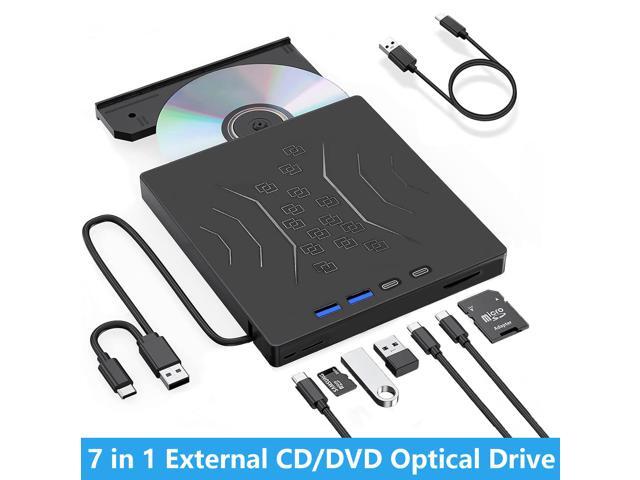 External CD/DVD Drive for Laptop, 7-in-1 USB 3.0 DVD Player, Portable CD/DVD Burner, CD-ROM External DVD Drive with 4 Ports USB Hub, SD/TF Card Reader, Compatible with Windows 11/10/8/7, Linux, Mac OS