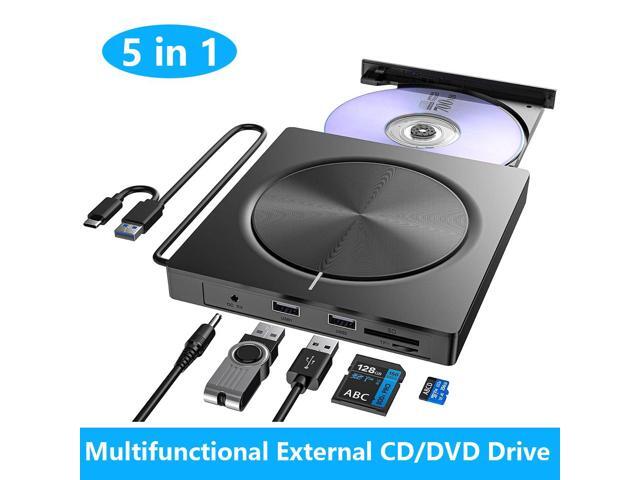 IHDAPP 6-in-1 External CD/DVD Drive for Laptop, DVD Player for Laptop, CD Reader with 2 USB A, 1 USB C & SD/TF Card Reader, External CD/DVD Optical Drive Compatible with Windows 11/10/8/7/Linux, MacOS