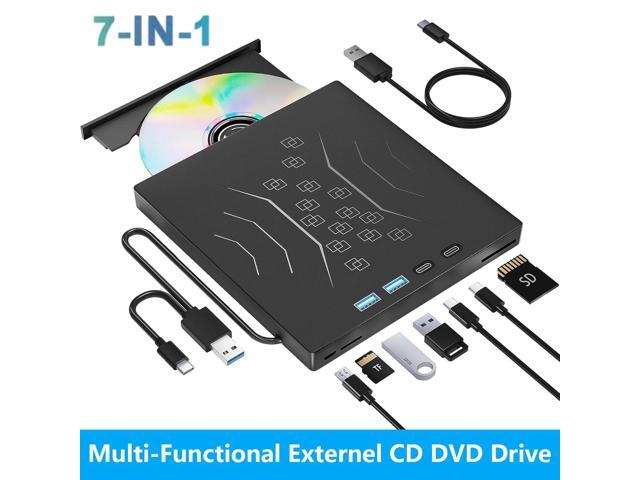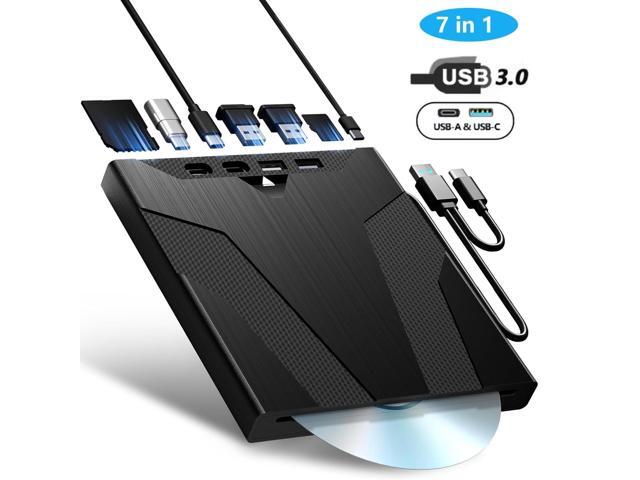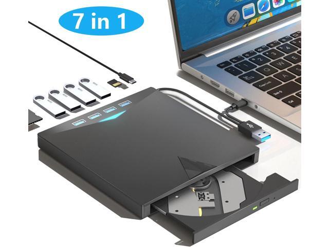 IHDAPP [7 in 1] External CD DVD Drive for Laptop with 4 USB Ports and TF/SD Card Slots USB 3.0 Portable CD/DVD Disk Drive Player Burner Reader Writer for Laptop PC Windows 11/10/8/7 Linux, Mac OS