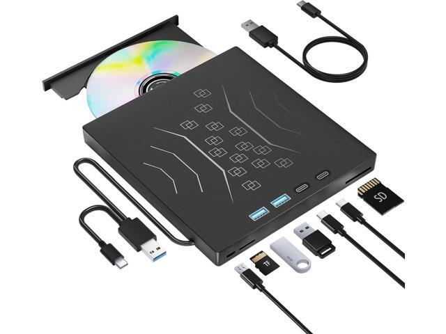 IHDAPP External CD/DVD Drive, Portable DVD Player for Laptop, 8 in 1 USB 3.0 Type C CD/DVD-ROM +/-RW CD Burner with 4 USB A, 1 USB C, SD/TF Card reader, Compatible with Windows 11/10/8/7 Linux, Mac