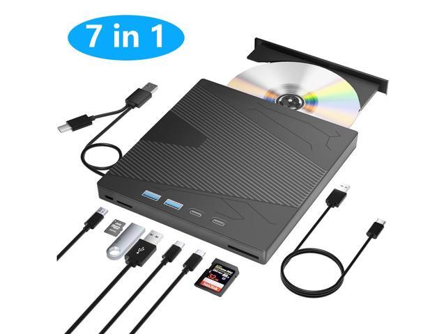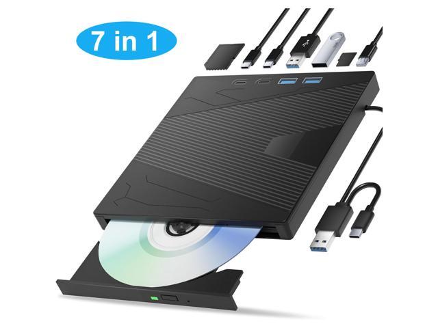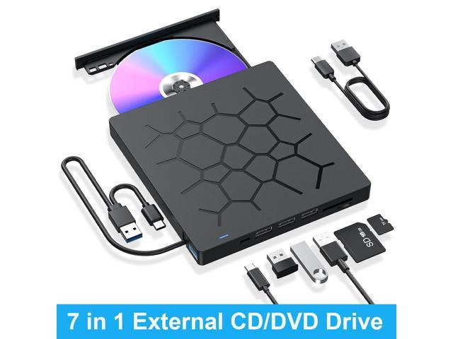 IHDAPP 7 in 1 External CD DVD Drive, USB Portable CD/DVD +/-RW Drive/DVD Player With SD Card Reader USB 3.0 USB C Hub CD ROM Burner Compatible With Laptop Desktop PC Windows 7/8/10//11/XP,Linux, MacOS