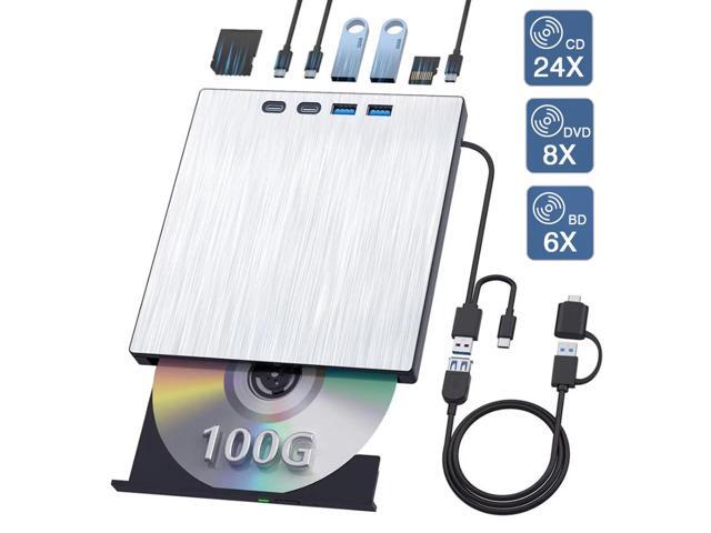 Hitoor 7 in 1 External Blu ray DVD Drive, Support 100G Disc R/W,USB 3.0 Type-C BD DVD CD Player Portable CD DVD Burner with SD/TF Card Slot, Compatible with Windows XP/7/8/10/11 Mac Laptop Desktop
