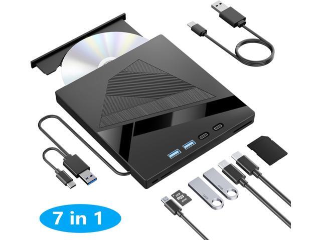 External CD DVD Drive for Laptop, [7 in 1] USB 3.0 & Type C CD Burner External DVD Drive Portable DVD Player with 4 USB and TF/SD Slots,Slim External CD Drive Compatible with Windows Linux MacOS