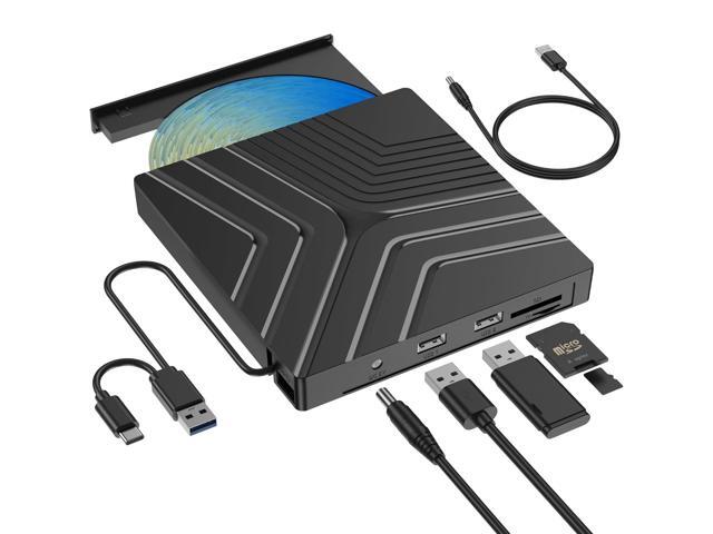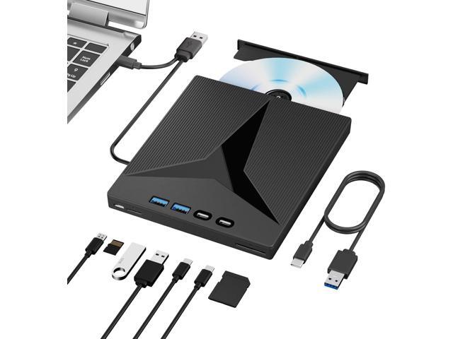 External CD DVD Drive for laptop Windows 11 10, USB 3.0 and Type-C Portable CD DVD +/-RW ROM Drive Reader CD/DVD Burner Rewriter with SD TF Slot & 2x USB Ports, Slim DVD/CD Player for Linux, Mac OS
