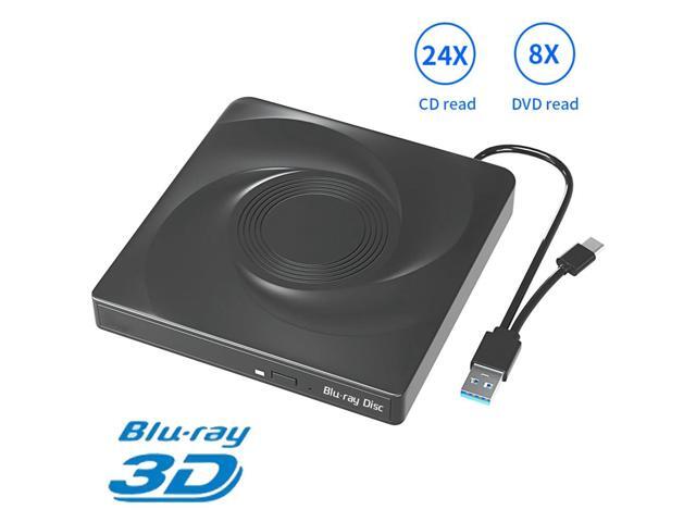 External Blu ray CD/DVD Drive, External DVD/BD Player Read Portable Blu-ray Cd DVD Drive USB3.0 and Type-C Port, Suitable for Windows XP/7/8/10 for Mac-Book PC