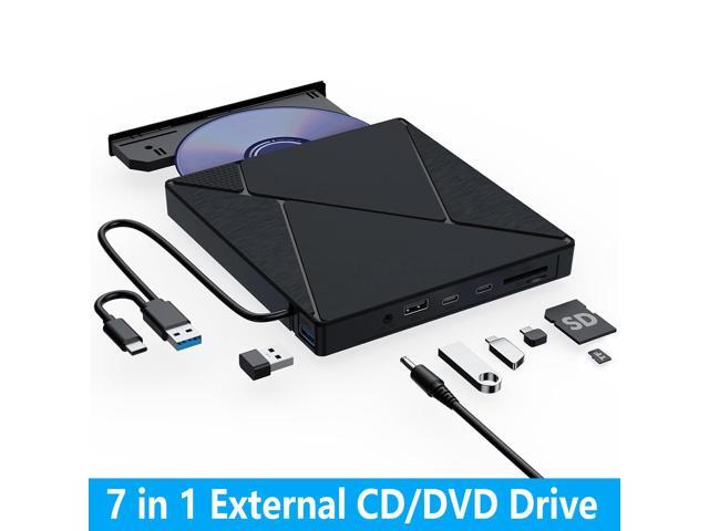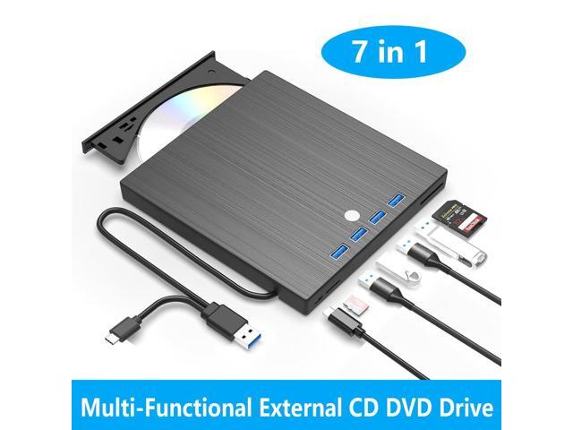 AUTYUE 7 in 1 External CD DVD Drive, USB 3.0 Type C Optical Disc Drive, 4 USB Ports and 2 TF/SD Card Slots, CD DVD Burner Writer Reader Player for Laptop Desktop PC Windows 11/10/8/7/XP Linux Mac OS