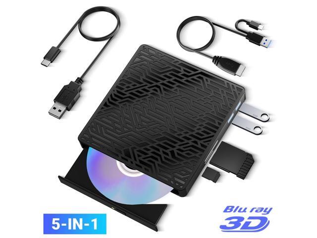 [5 in 1] External Blu Ray Drive, Portable Bluray Player Writer Reader,CD Burner with USB 3.0 typc C Port& SD Card,DVD & CD-ROM +/-RW, External Blu-Ray CD DVD Drives for PC Laptop Windows Linux MacOS