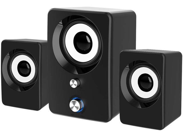 Computer Speakers, Maboo 3.5mm Jack PC Speakers Wired with Subwoofer, USB Powered Multimedia 2.1 Channel for Desktop, Windows, Laptop, Tablets, Smartphone, PC Black (Speaker 2.1)