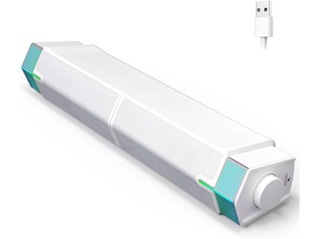 Bluetooth Computer Speakers for PC Desktop Monitor, Gaming PC Sound Bar - Wired USB-Powered, Superb Stereo Sound, with Gradient LED Lighting, White