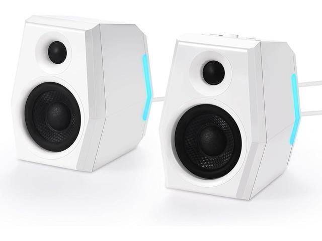 SW209 36W Computer Gaming PC Speakers - 2.75" Fiberglass Woofer and Silk Dome Tweeter - Built-in 24bit DAC Dynamic 3D Surround Sound - Bluetooth 5.2 USB 3.5mm Aux Inputs - RGB Light - White