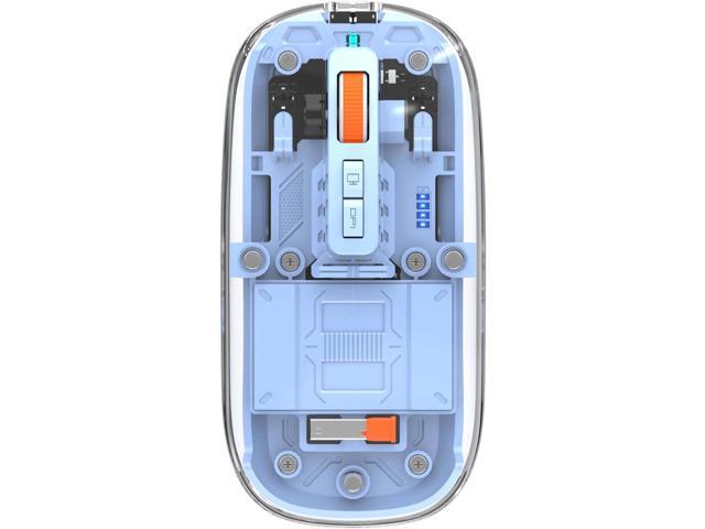 AUTYUE Modern Transparent Mouse, Slim Wireless Mouse - Magnetic Shell Design, Triple-Mode (Dual Bluetooth + USB) Wireless Mouse, Rechargeable, One-Touch Desktop, for MacBook/pc/iPad/Laptop (Blue)