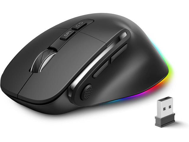 AUTYUE Ergonomic Rechargeable Mouse with Jiggler, Bluetooth + 2.4G Wireless + Wired (3 in 1) Connection, Max 4800DPI, Rapid Fire Key, 5ft Charging Cable, Carpal Tunnel Silent Mice with LED for Office