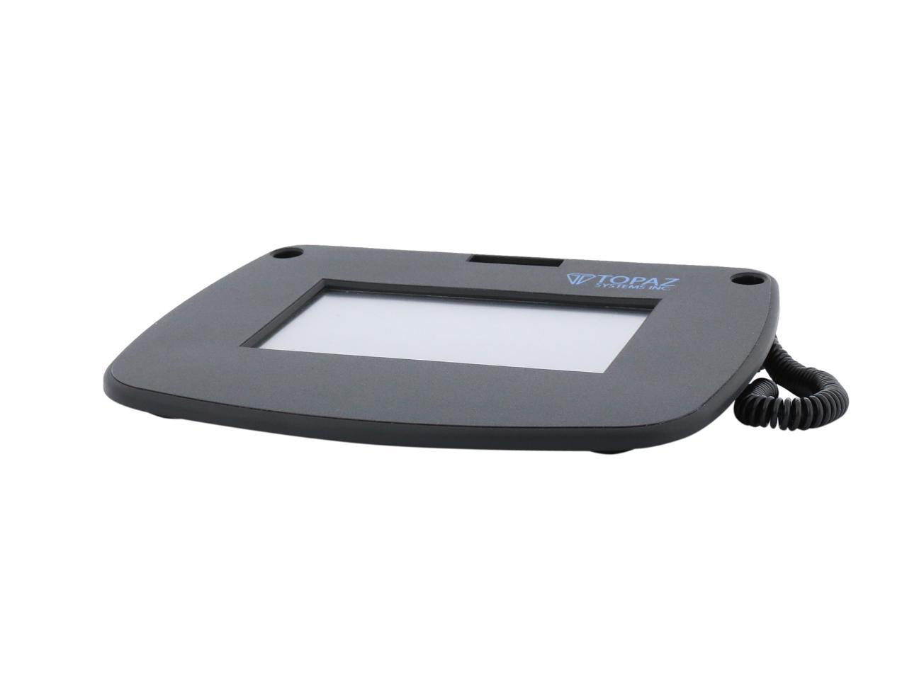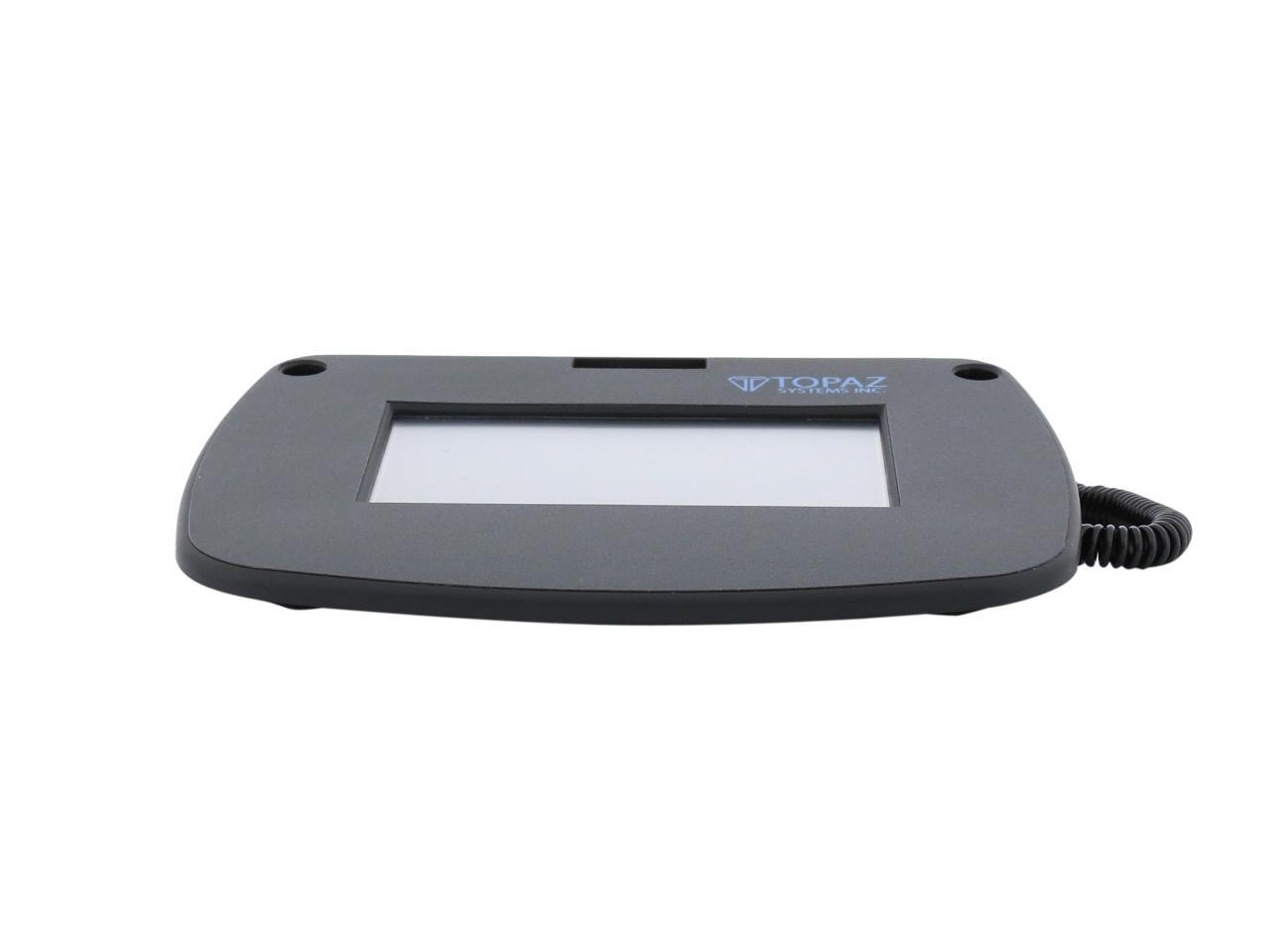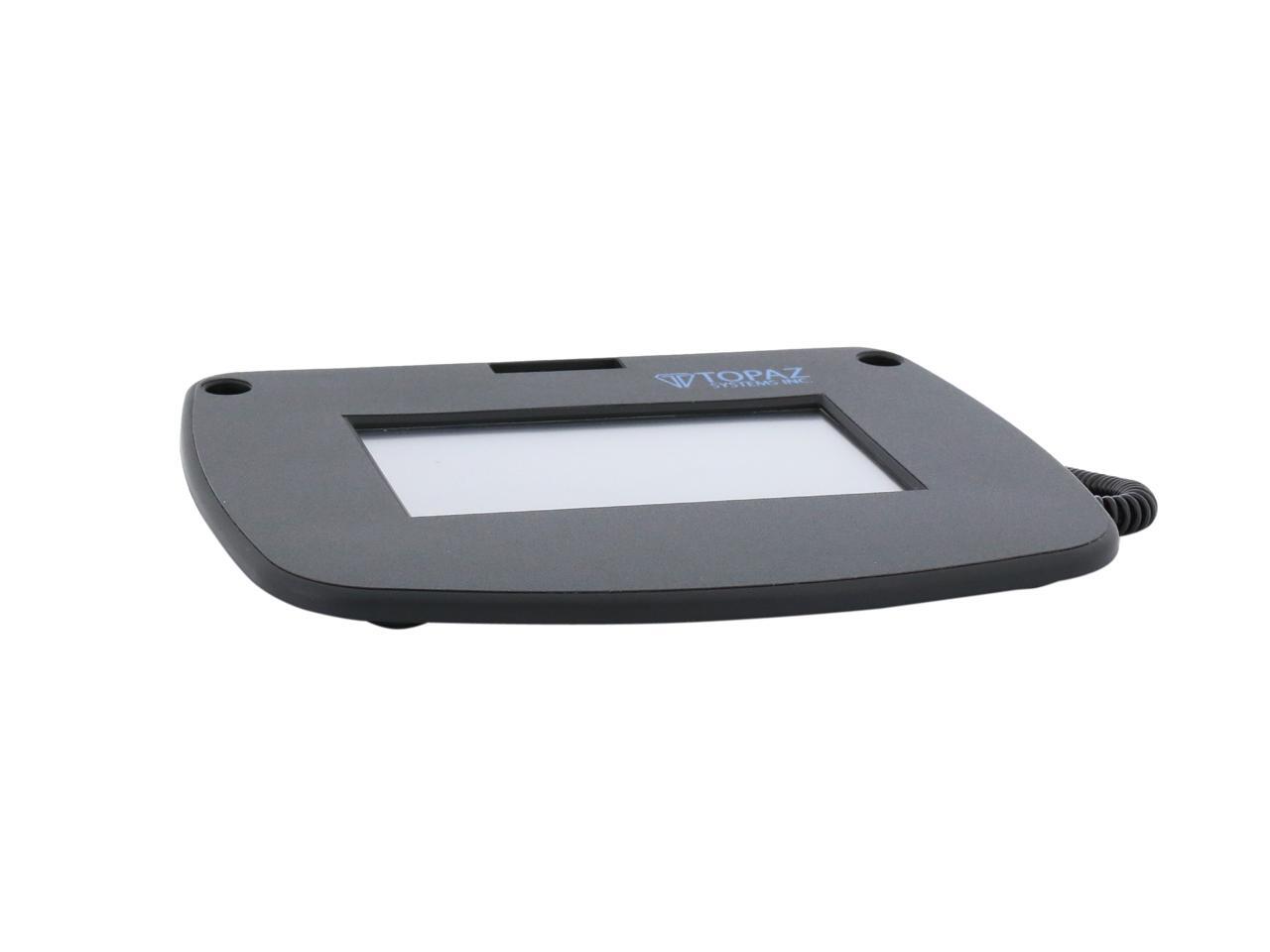 The SigLite®Color 4.3 is an advanced biometric electronic signature pad with full-color 480x272 widescreen backlit TFT display. Port-powered in both HID and virtual-serial USB versions, the SigLite Color4.3 sports a small, thin, and attractive footprint, optimized large handrest, dual vertical pen holders, snap-in travel pen-and-tether storage, and sloped ergonomic signing surface with easy slide-in screen protector.