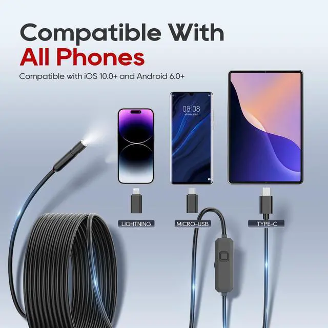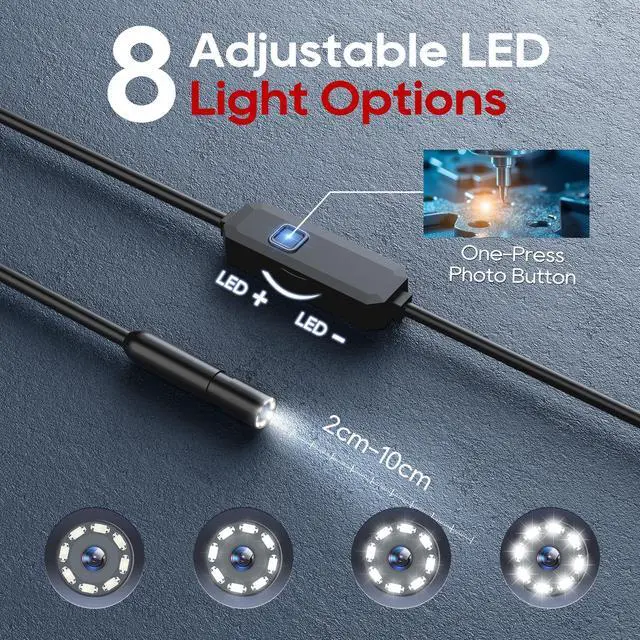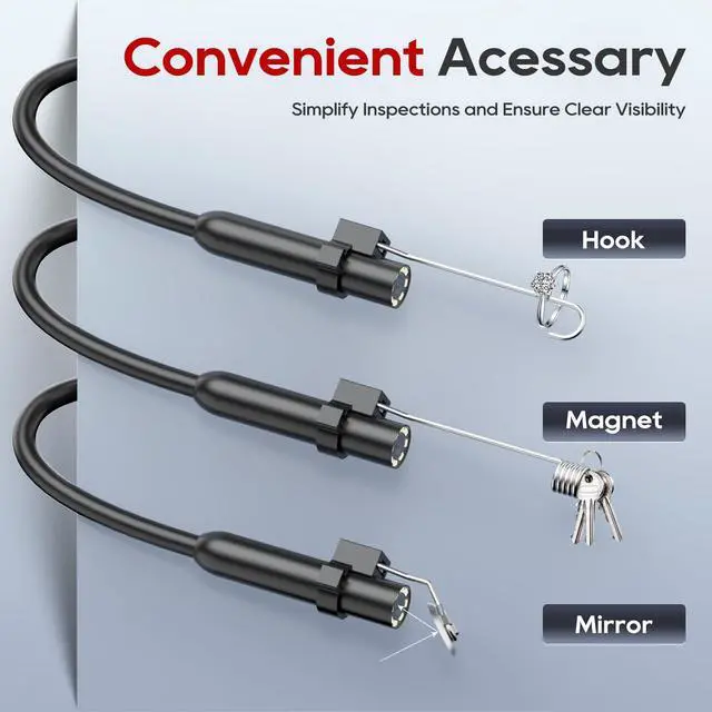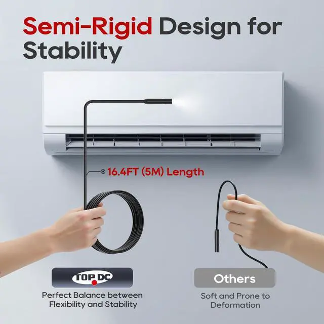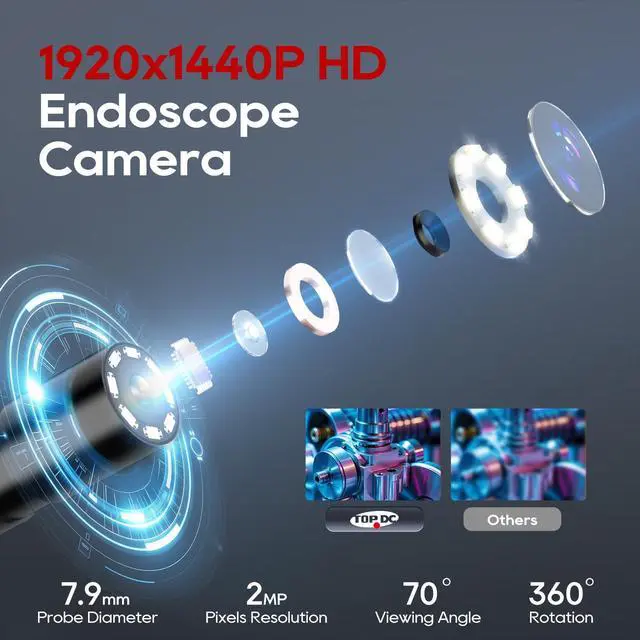 TOPDC Endoscope Camera with Light, 1920P HD Scope Camera, 8 LED Adjustable Inspection Borescope for Android and IOS, 16.4ft Semi-Rigid Snake Cable, IP67 Waterproof