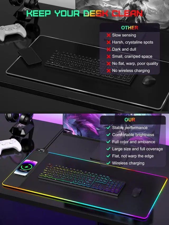 31.5” x 15.75” XXL Wireless Charging Mouse Pad x 1, 6.56ft USB-C to USB-C Woven Cable x 1, User Manual x 1.