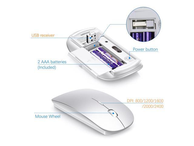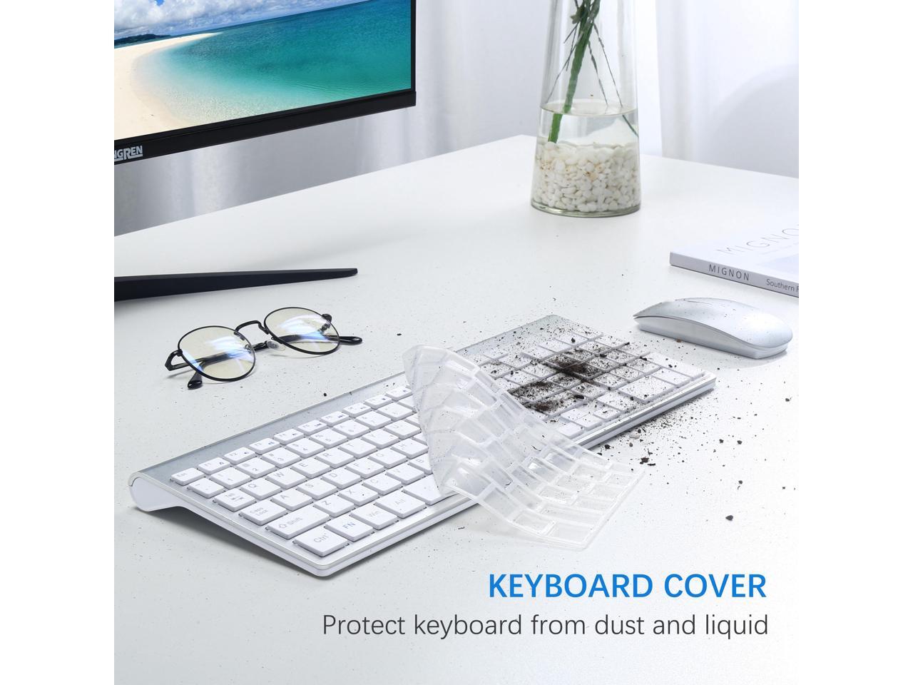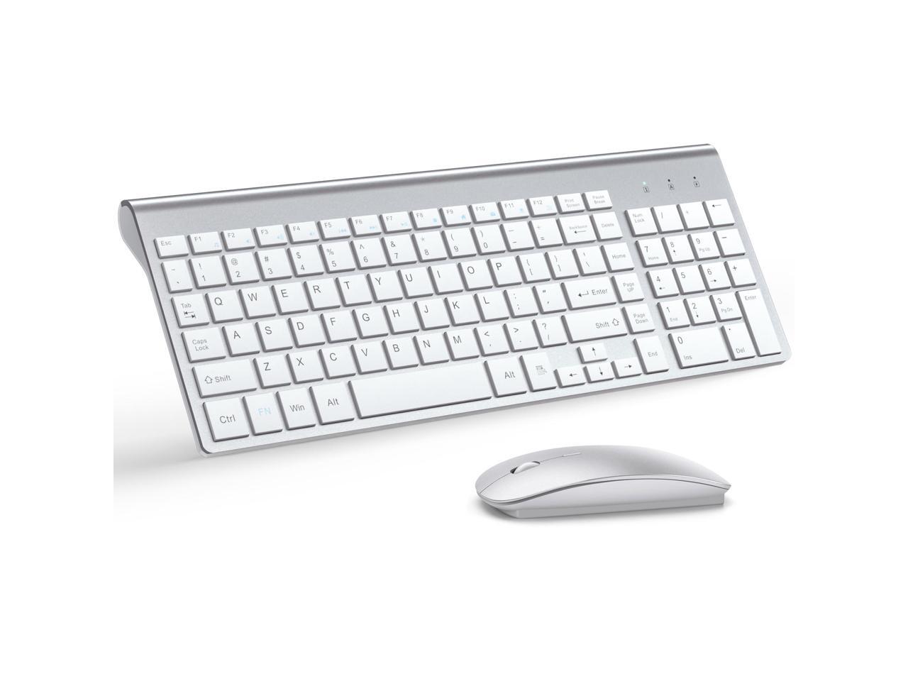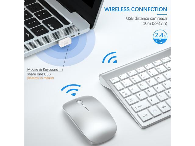 TopMate Wireless Keyboard and Mouse Ultra Slim Combo, 2.4G Silent Compact USB 2400DPI Mouse and Scissor Switch Keyboard Set with Cover, 2 AA and 2 AAA Batteries, for PC/Laptop/Windows/Mac-Silver White