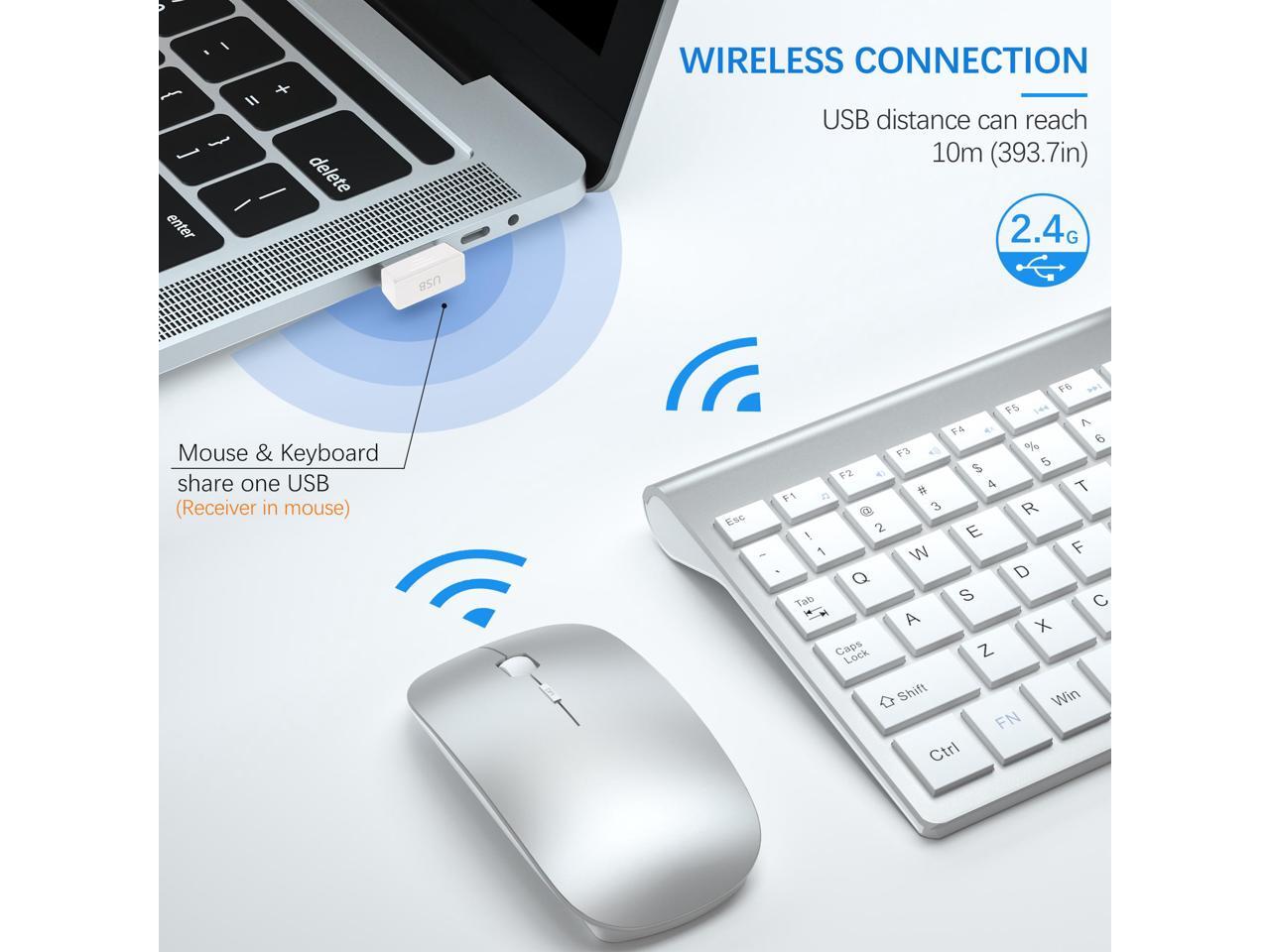 - Ultra-Slim and Portable Design: Wireless pc keyboard has ultra-thin body, which can easy to carry. keyboard and mouse wireless is super match with office desk.