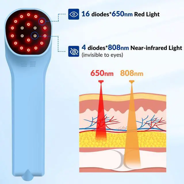 650nm Red Laser Light can improve blood circulation, works on the upper surface of the skin to reduce inflammation, skin redness, stimulate acupuncture points and improve after-surgical woundshealing, injuries, etc.
