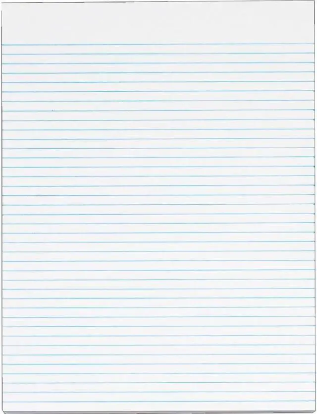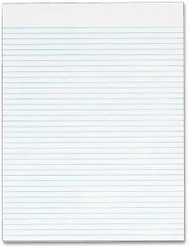 Writing pads feature a durable chipboard backer to support the pad when writing away from a desk. Each letter-size pad includes 50 sheets of 15 lb. white paper. Each sheet is narrow-ruled. Glue-top construction allows easy sheet removal. Backer is made of 30 point chipboard.
