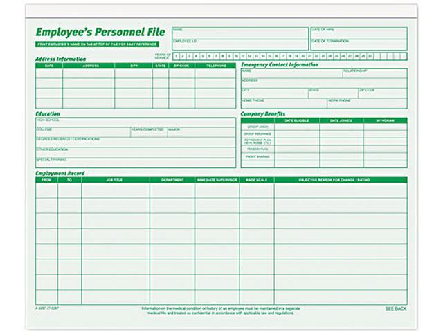 Tops 3287 Employee Record File Folders, Straight Cut, Letter, Green, 20/Pack