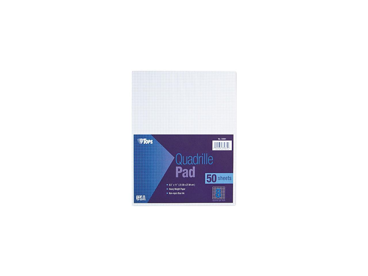 Tops 33081 Quadrille Pads, 8 Squares/inch, 8-1/2 x 11, White, 50 Sheets/Pad
