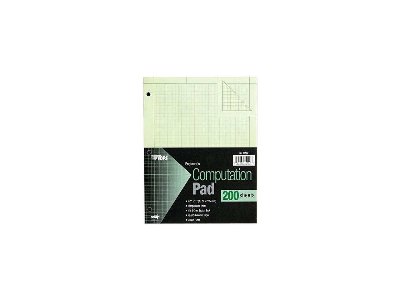 Tops 35502 Engineering Computation Pad, Quadrille Rule, Letter, Green, 200 Sheets/Pad