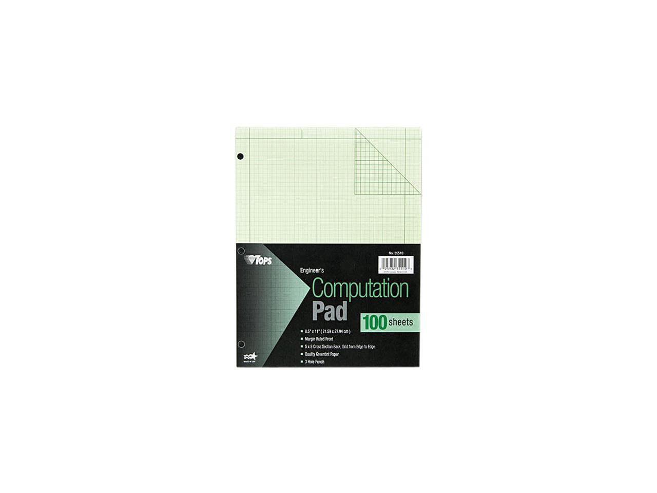 Tops 35510 Engineering Computation Pad, 5 Squares, Quad Rule, Ltr, Green, 100-Sheet/Pad