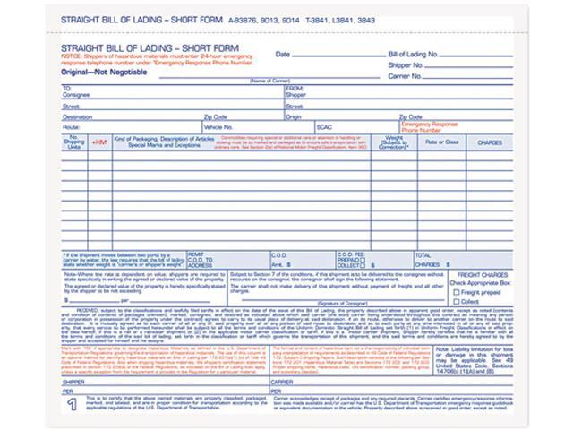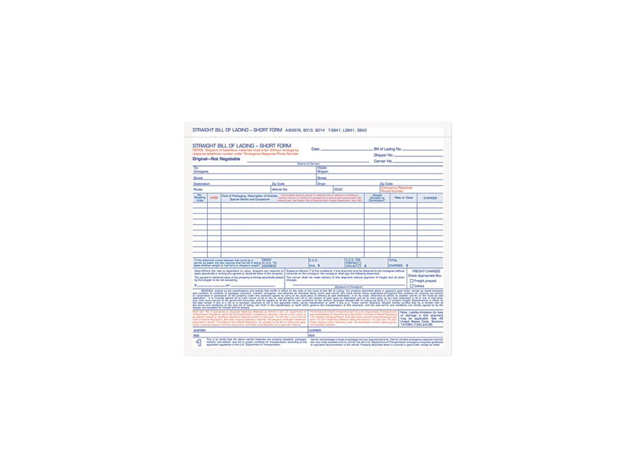 Tops 3841 Hazardous Material Short Form, 8-1/2 x 7, Three-Part Carbonless, 50 Forms