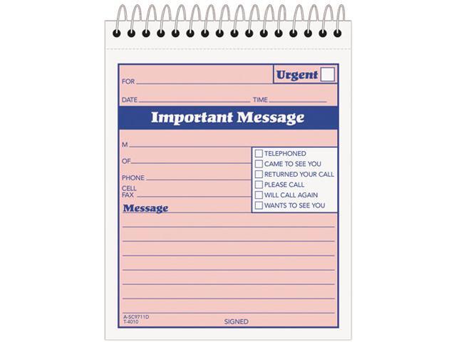 Tops 4010 Telephone Message Book with Fax/Mobile Section, 4-1/4 x 6, Two-Part, 50/Book