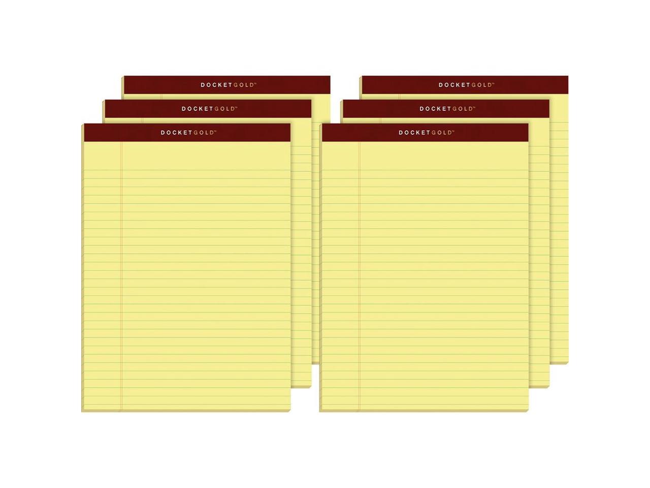 Tops 63956 Docket Ruled Perforated Pads, Gold Legal, 8 1/2 x 11 3/4,Canary, 50 Sheets, 6/Pk