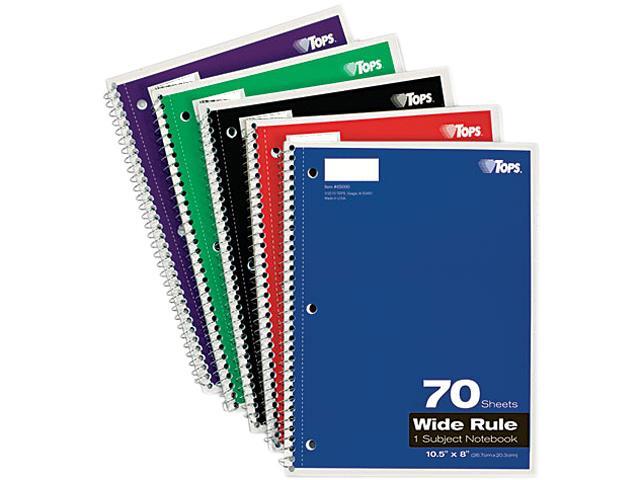 Tops 65000 Wirebound 1-Subject Notebook, Wide Rule, 10-1/2 x 8, White, 70 Sheets/Pad