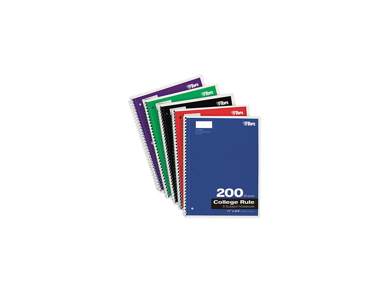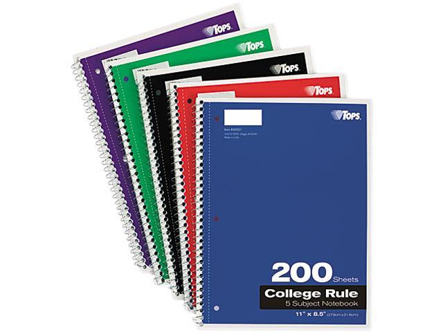 Tops 65581 Wirebound 5-Subject Notebook, College Rule, 11 x 8-1/2, White, 200 Sheets/Pad