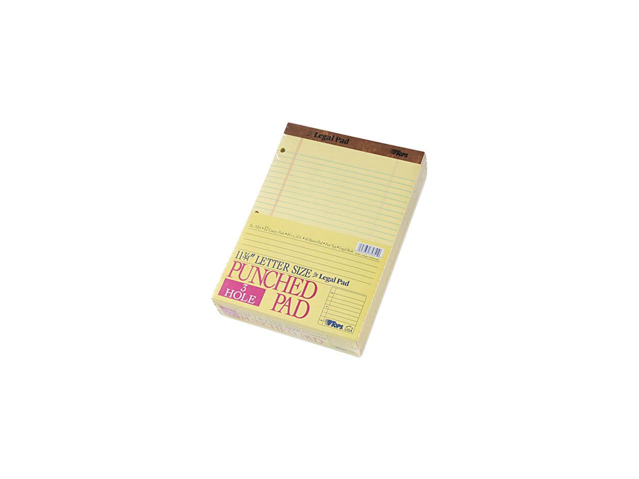 Tops 75351 3-Hole Punched Perforated Pads, Lgl Rule, Ltr, Canary, 50 Sheet Pads, Dozen