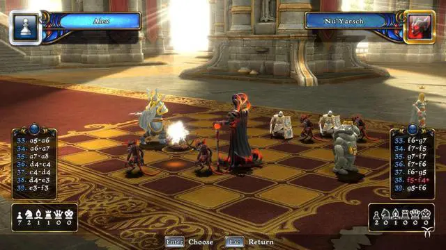 available environments, each with its own unique landscape and presentation features. Traditionally recognized game pieces have been given a facelift as hulking stone golems and beastly chimaeras take the place of the typical rook and knight pieces respectively.