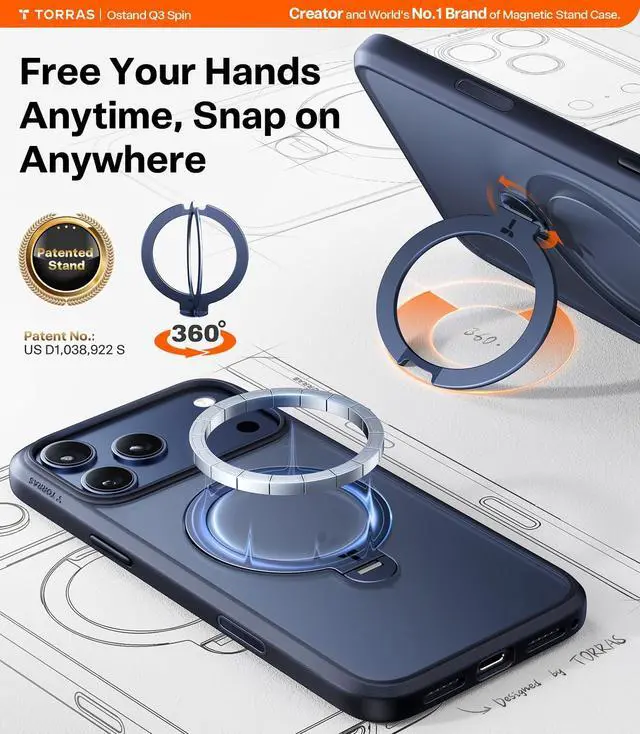 TORRAS Ostand Q3 Spin ( 2025 ), ONLY for iPhone 17 Pro Case, 6.3''