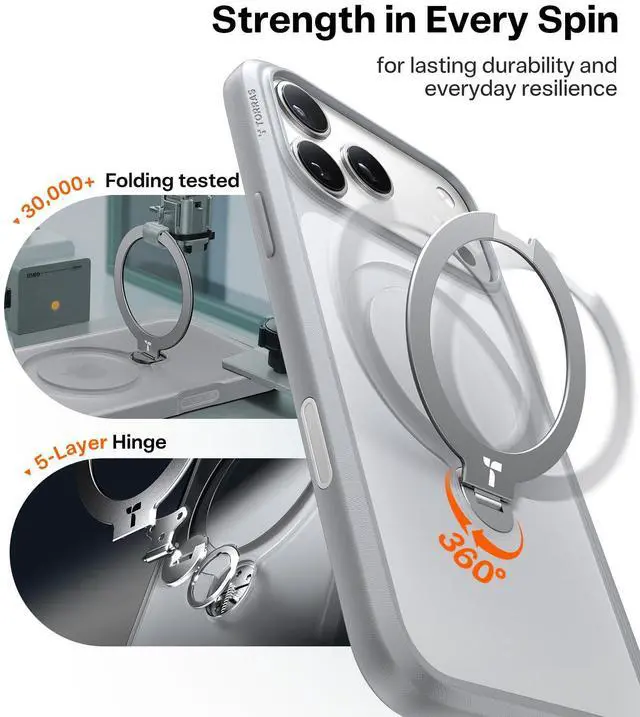 6-Year Ostand Pioneer, TORRAS Q3 Spin ( 2025 ) for iPhone 17 Pro Case, 6.3''