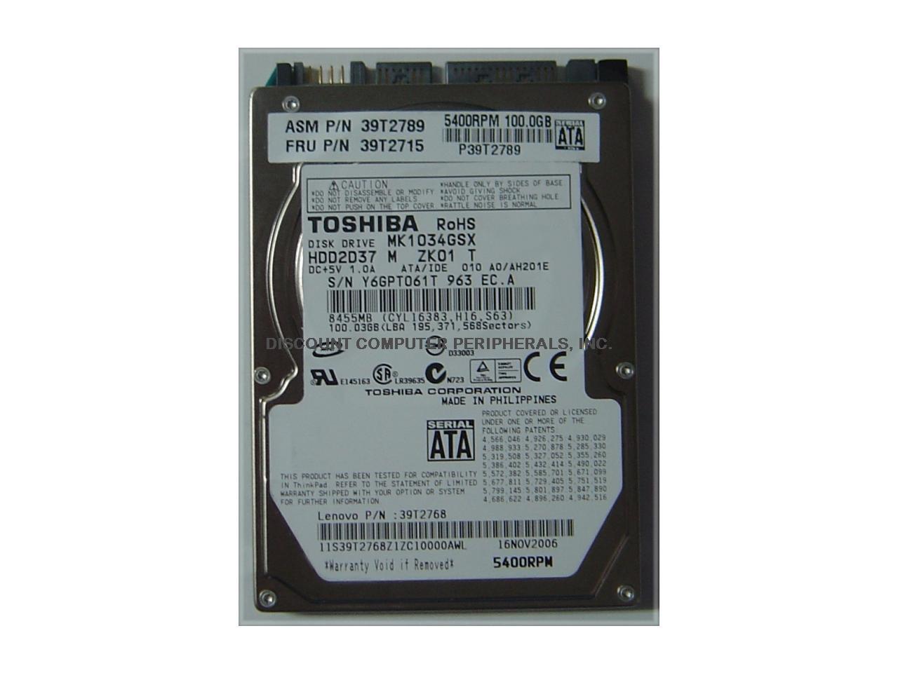 TOSHIBA HDD2D37 (MK1034GSX) 100GB 5400 RPM 8MB Cache SATA 1.5Gb/s 2.5" Notebook Hard Drive Bare Drive