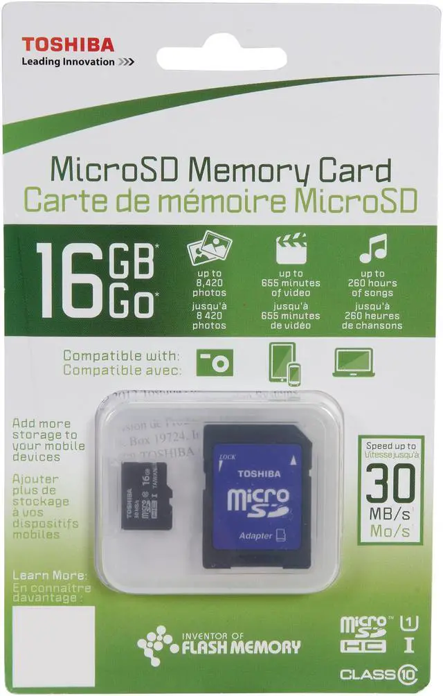 Fast transfer speed up to 30 MB/s read and 10 MB/s min write, twice as fast as class 4 microSDHC.