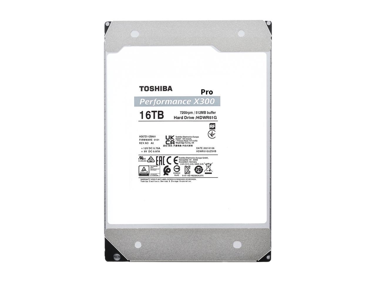 TOSHIBA X300 Pro HDWR51GXZSTB 16TB 7200 RPM 512MB Cache SATA 6.0Gb/s 3.5" Internal Hard Drive