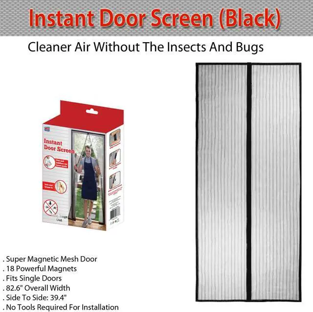 Total Value - Instant Door Screen! Keep the bugs out of your own house by using this super magnetic mesh door. They open and close with ease automatically using 18 powerful magnets. No tools are required for installation. It provides cleaner air without insects and bugs all season long. Fits single doors sliding doors RVS and more. Overall height - top to bottom: 82.6" overall width - side to side: 39.4" - Black